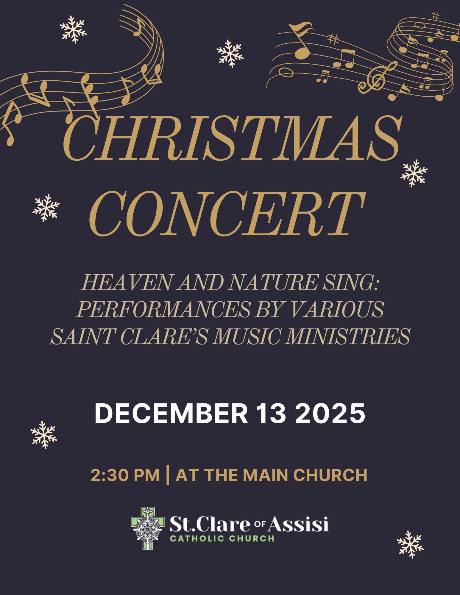Presented by the talented members of the St. Clare Music Ministries, this festive afternoon will be filled with inspiring carols, sacred music, and holiday favorites that lift the spirit and warm the heart.