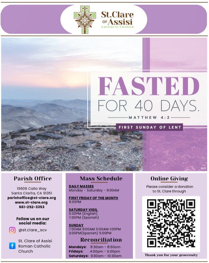 Join us each Thursday evening this Lent as we welcome inspiring speakers who will guide us deeper into prayer, reflection, and renewal. Come nourish your spirit, grow in faith, and walk this sacred season together with your St. Clare community.