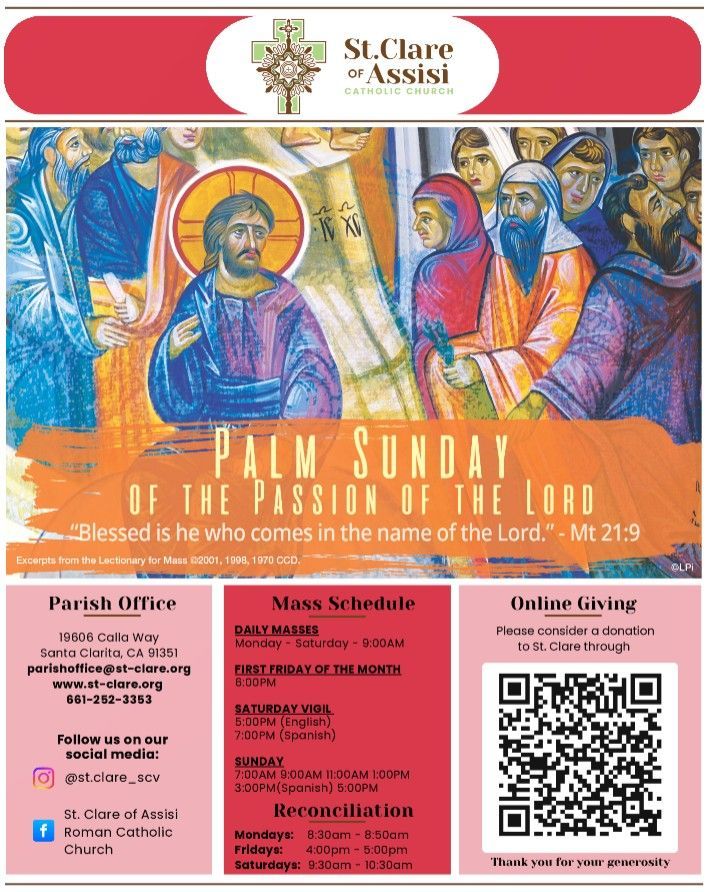 π 01:00 PM - Mass (English) π 03:00 PM - Mass (Spanish) π 05:00 PM - Mass (English)