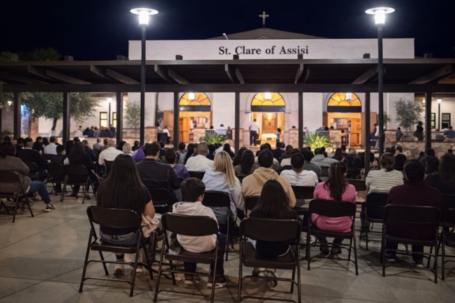 Nuestra parroquia vivió algo que nunca había ocurrido antes durante las misas del Domingo de Pascua. Hemos sacado sillas al patio porque el salón parroquial y la iglesia estaban llenos.