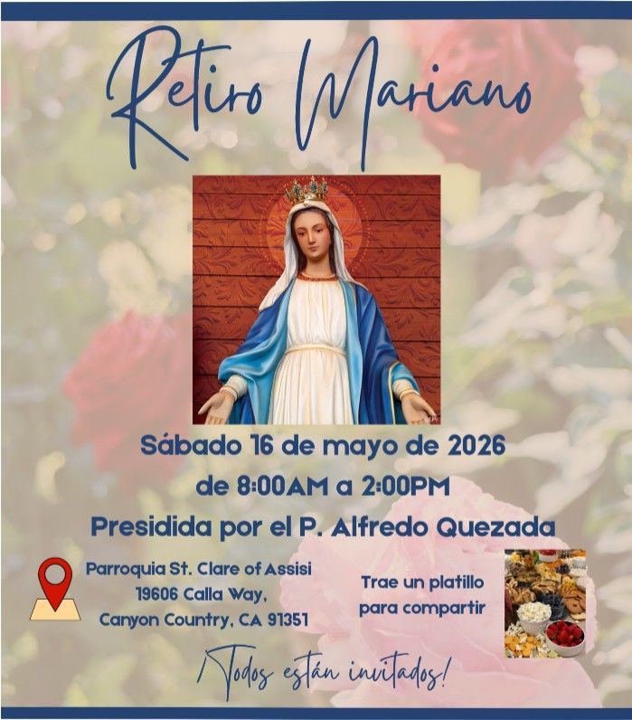 Un día para detenerse, respirar y dejar que la paz de María renueve tu corazón. El Retiro Mariano te invita a entrar en un espacio de silencio, reflexión y encuentro con Dios, guiado por la ternura de nuestra Madre. A través de oración, Escritura y momentos de contemplación, este retiro ofrece una oportunidad para reconectar con la presencia amorosa del Señor.